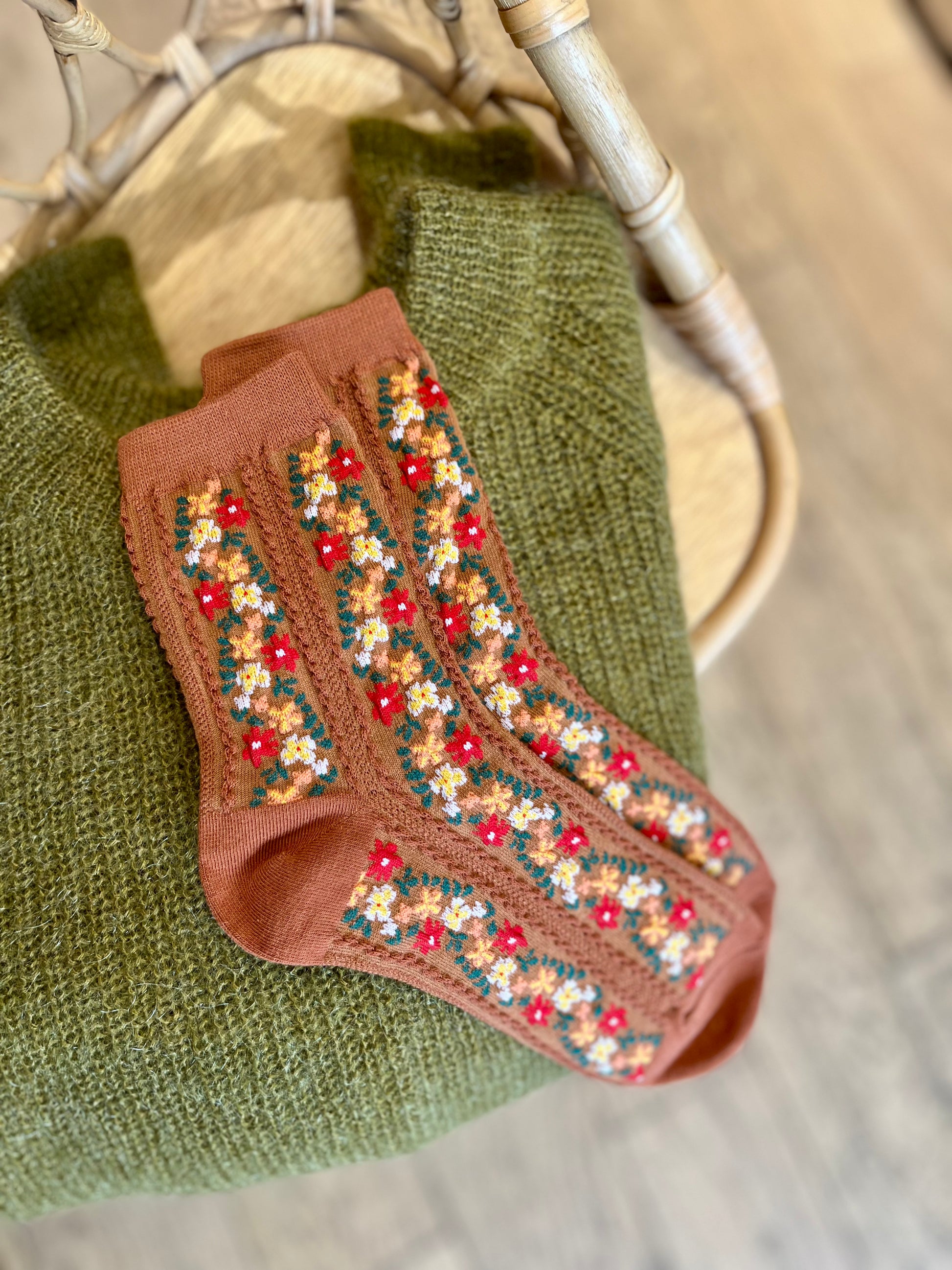 Chaussettes FLORAL rouille de la marque Tiepology.