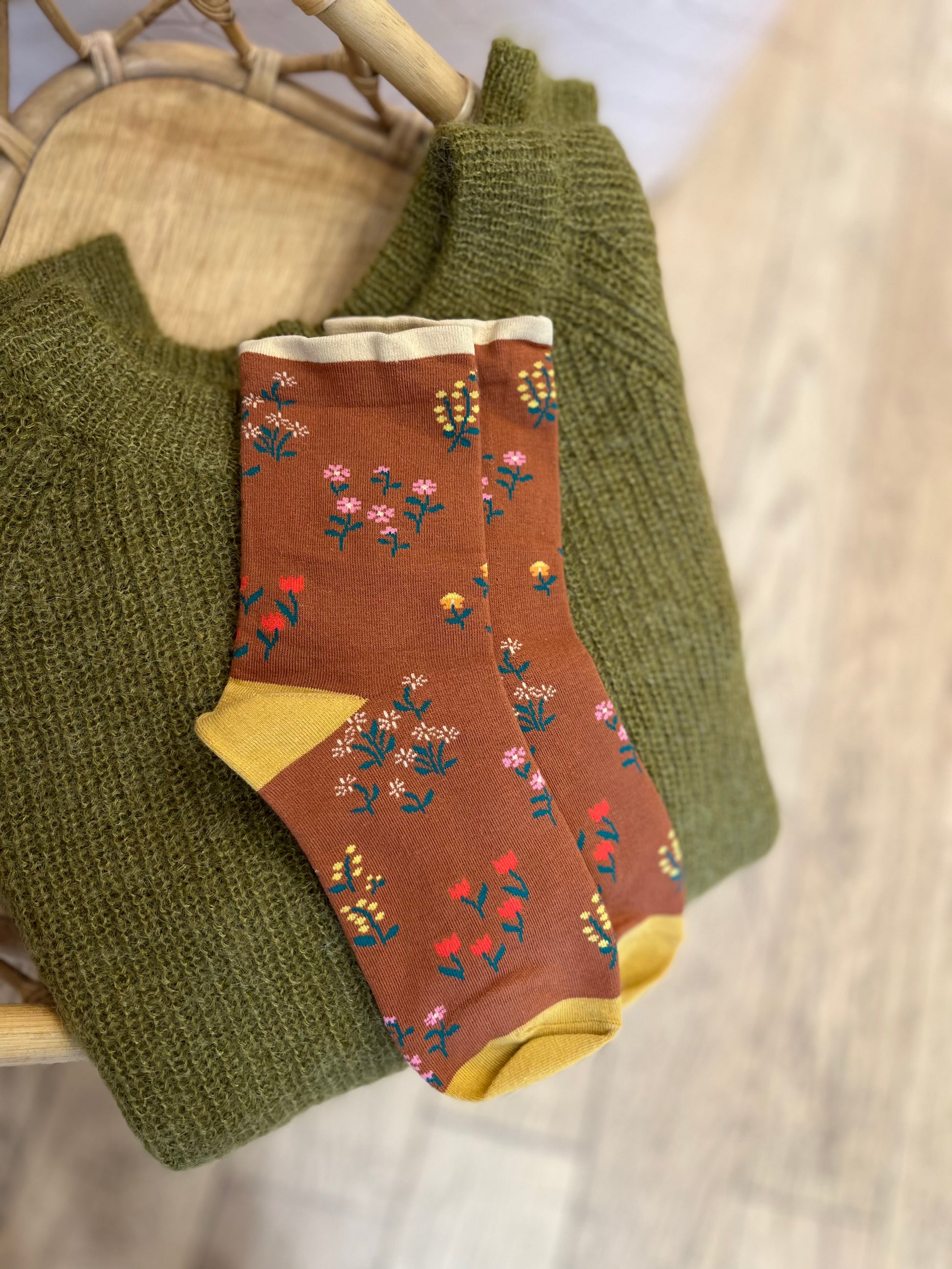 Chaussettes PENELOPE rouille et taupe de la marque Tiepology.