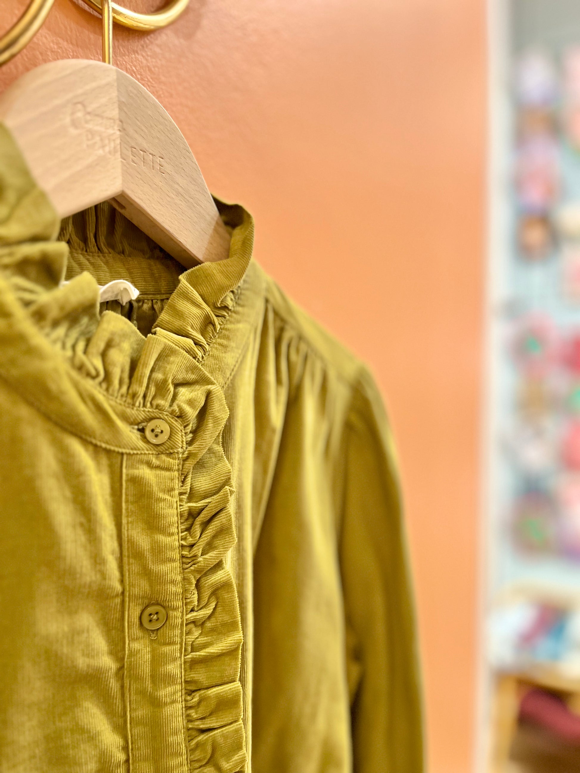 Craquez pour cette jolie chemise en fin velours AMELIA. On aime cette chemise en coton pour sa matière toute douce et son col victorien volanté.