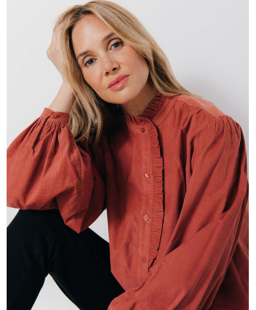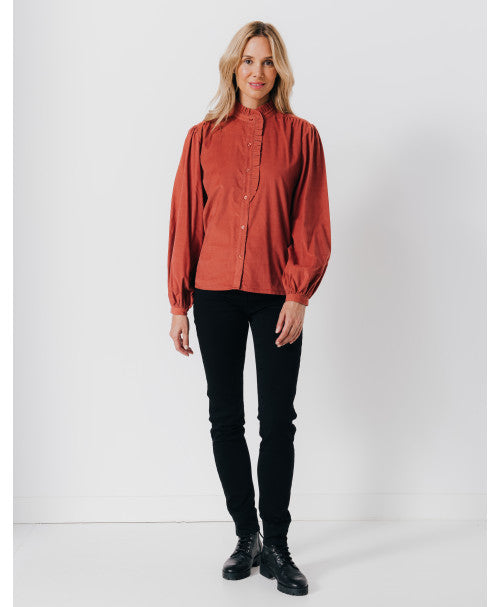 Craquez pour cette jolie chemise en fin velours AMELIA. On aime cette chemise en coton pour sa matière toute douce et son col victorien volanté.