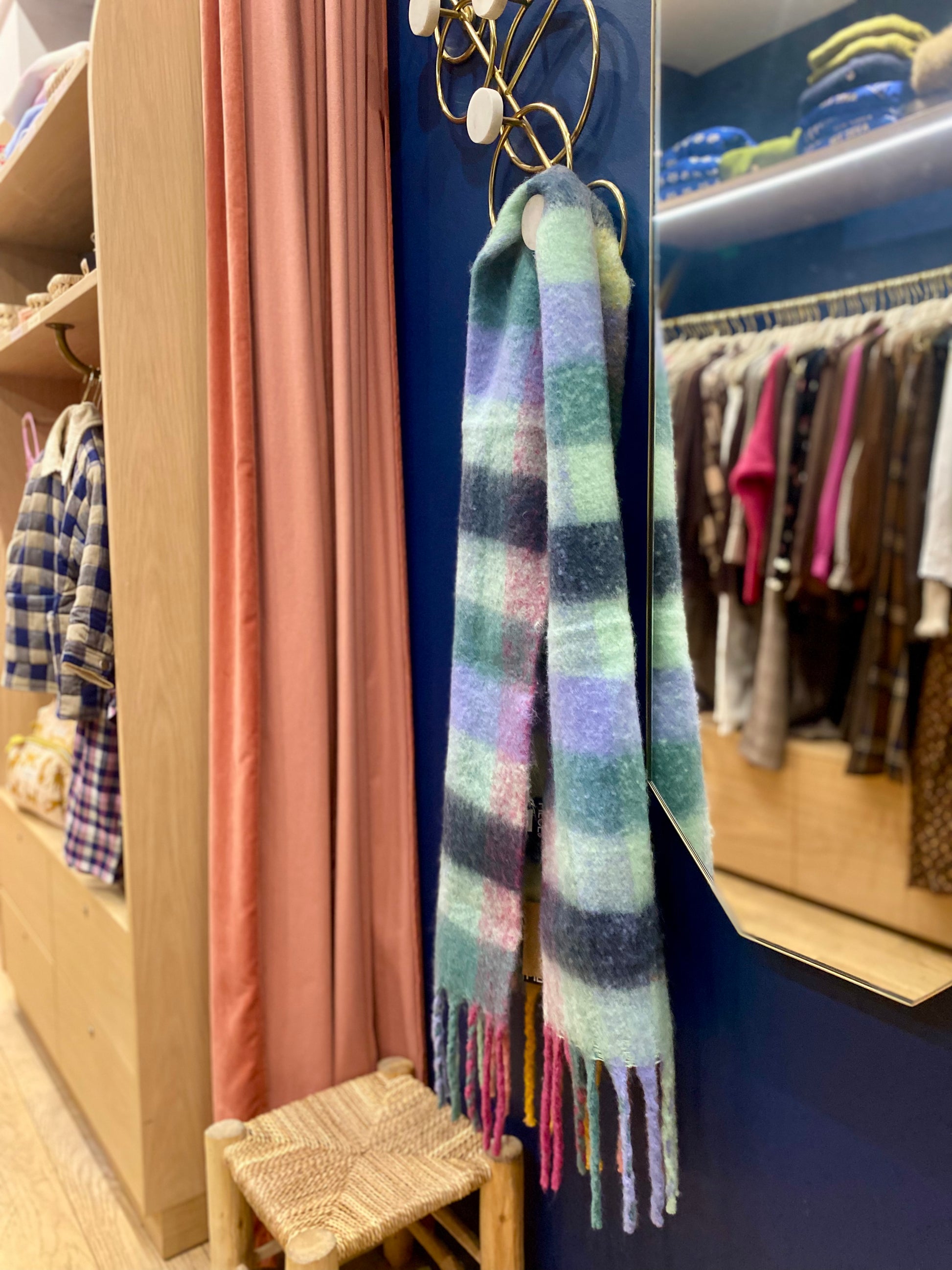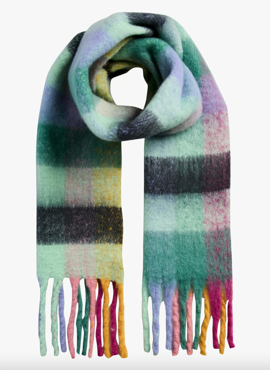 Écharpe JIKKA carreaux verte de la marque Pieces