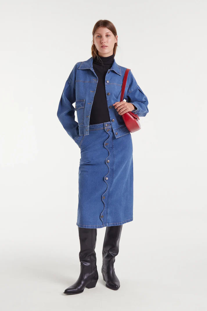 Jupe BARBARA en jean découpe feston de la marque Compania Fantastica
