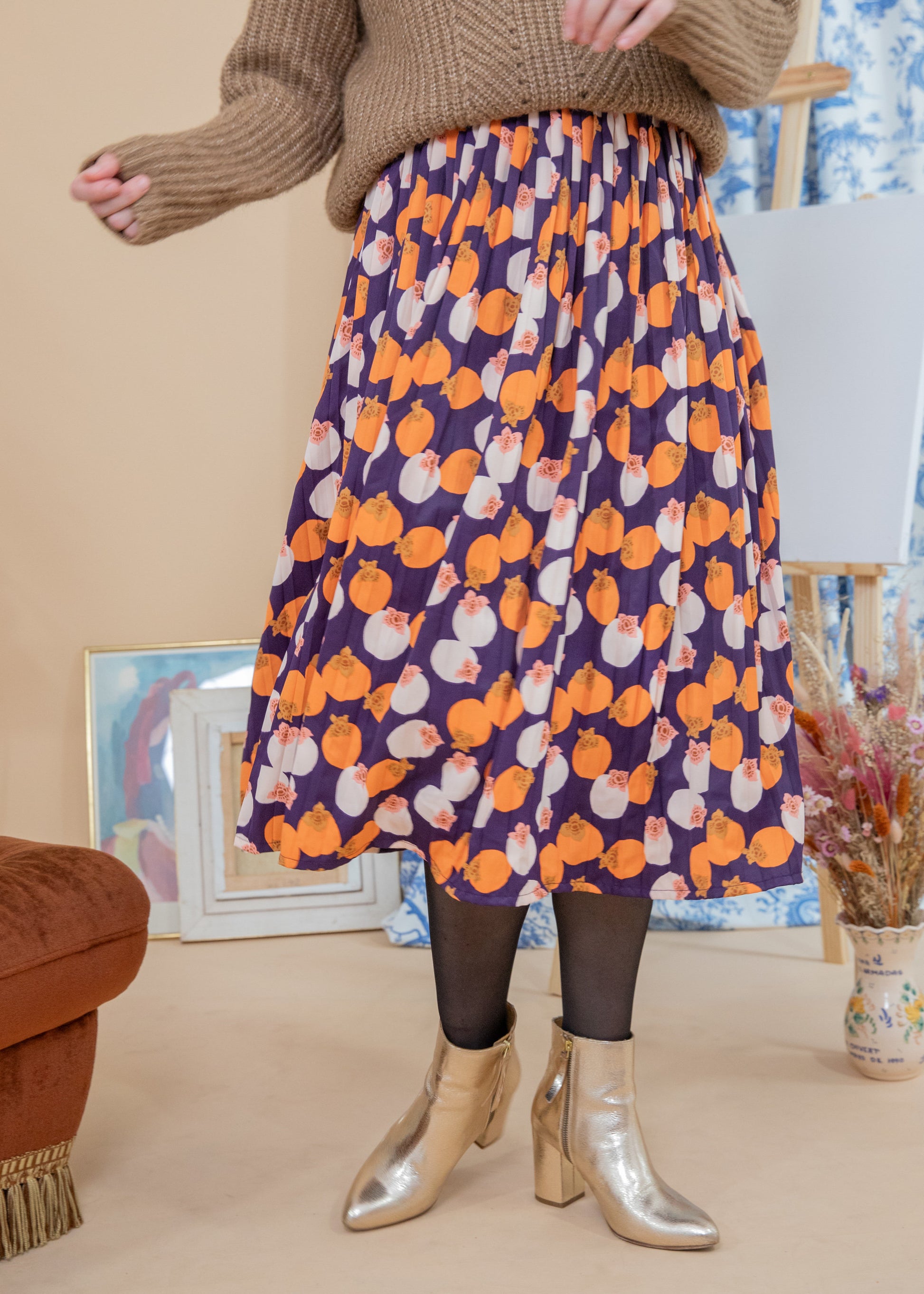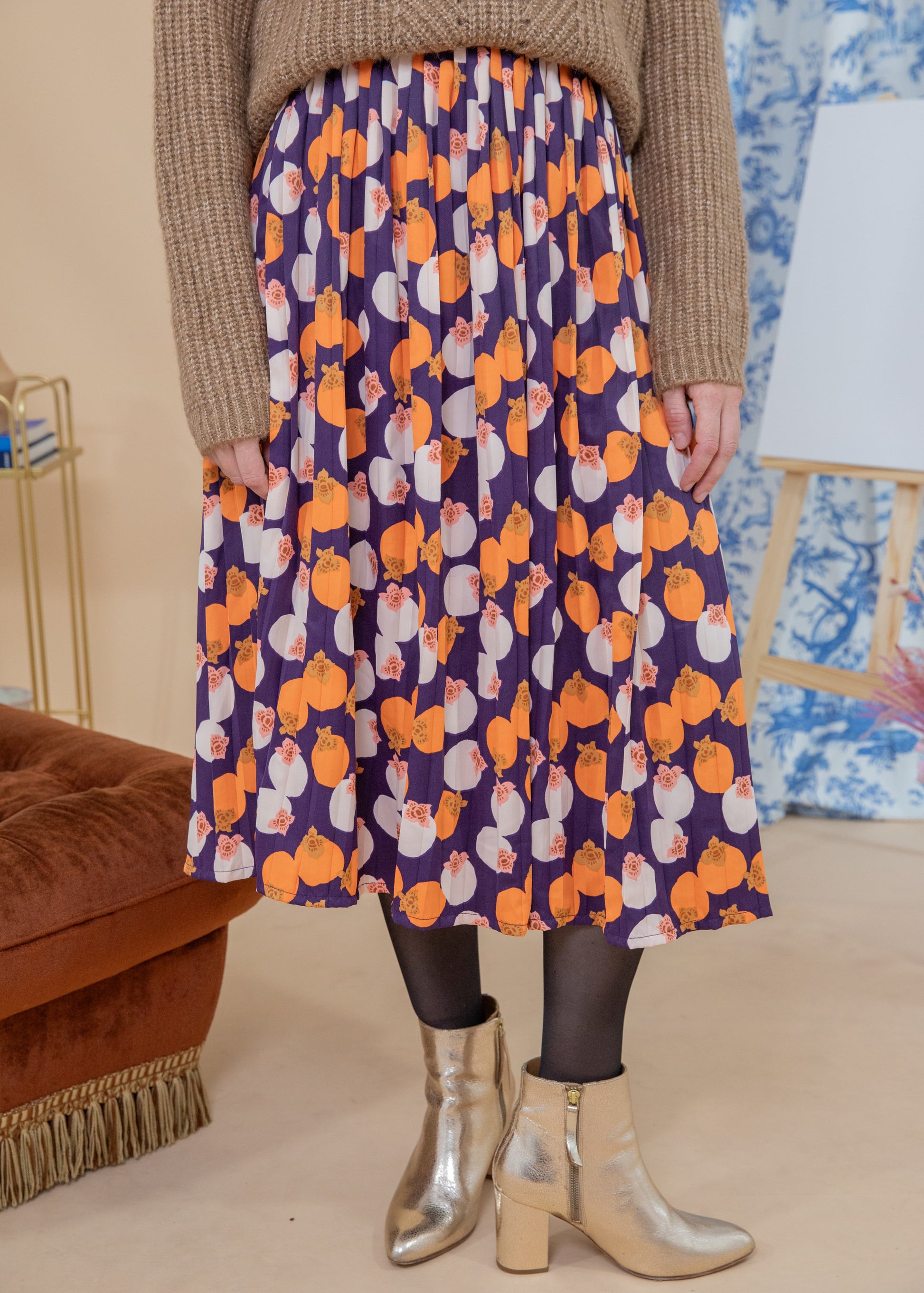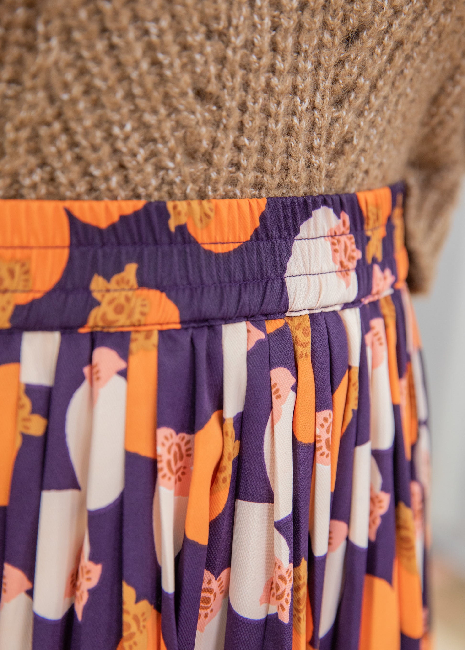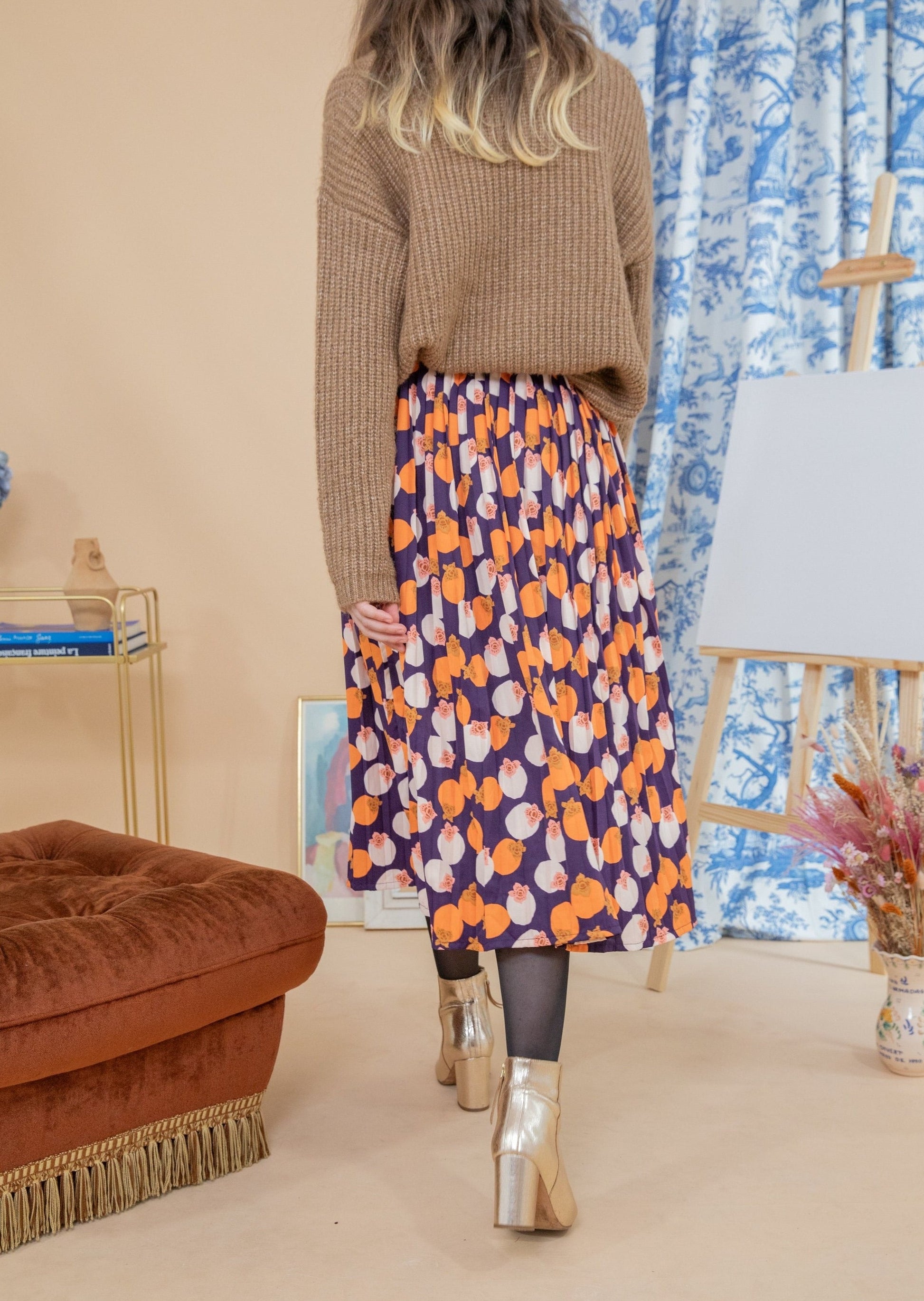 Aurélie mesure 1m76 et porte la taille M. Nous avons choisi d'associer cette jupe avec le pull Kira marron.