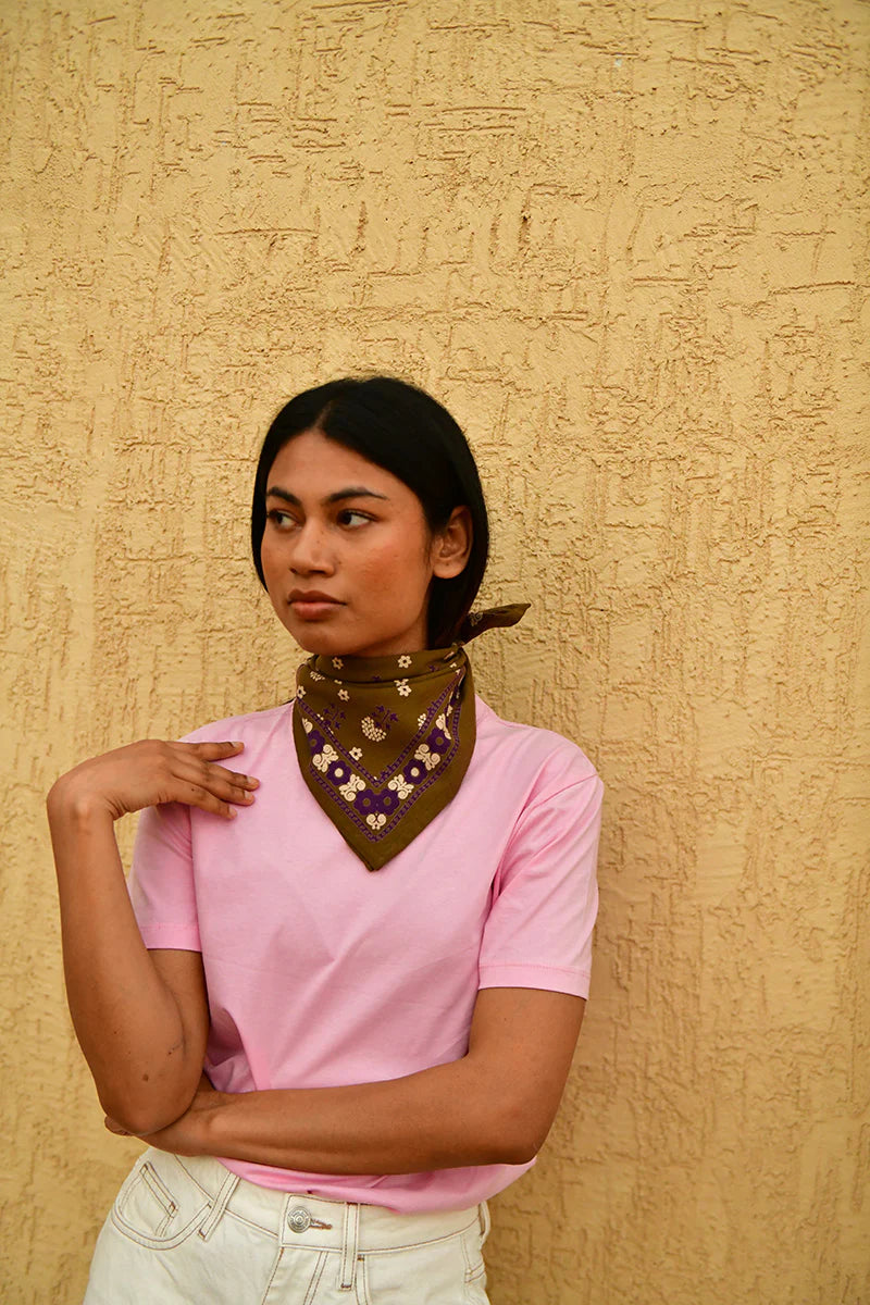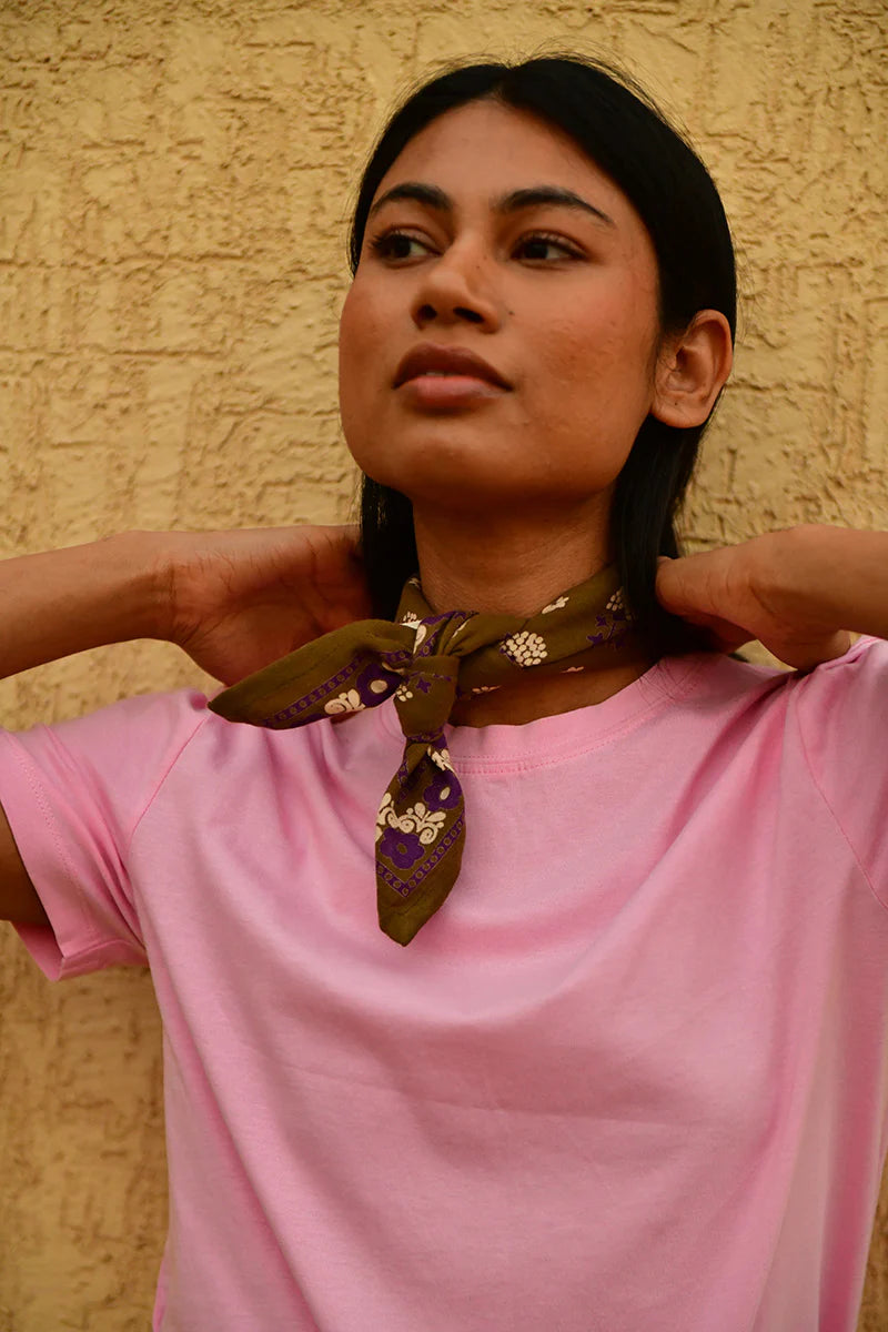 Cet foulard a été imprimé de manière artisanale selon la technique d'impression blockprint et confectionné à Jaipur en Inde. Les couleurs sont réalisées à partir de pigments naturels.