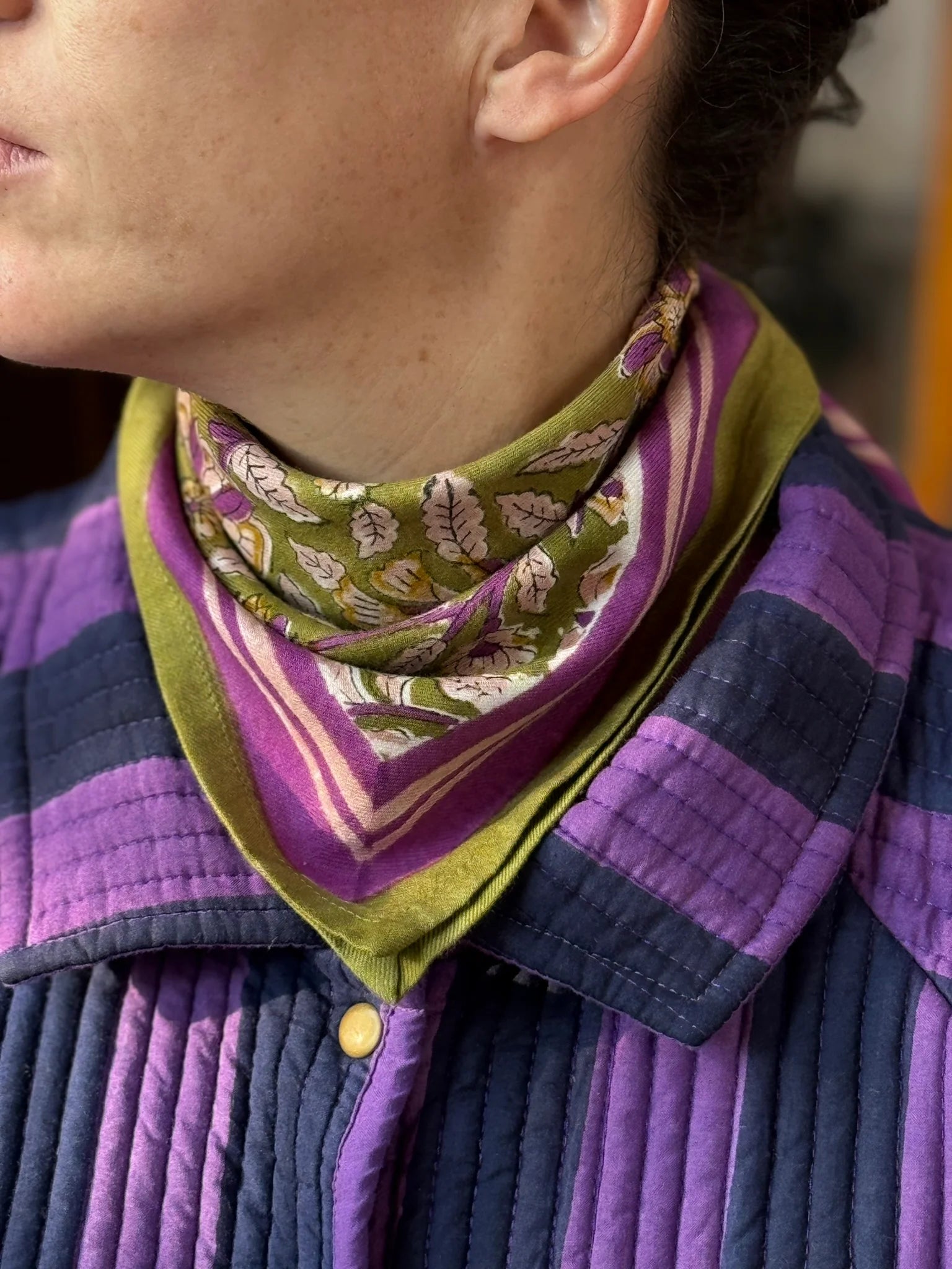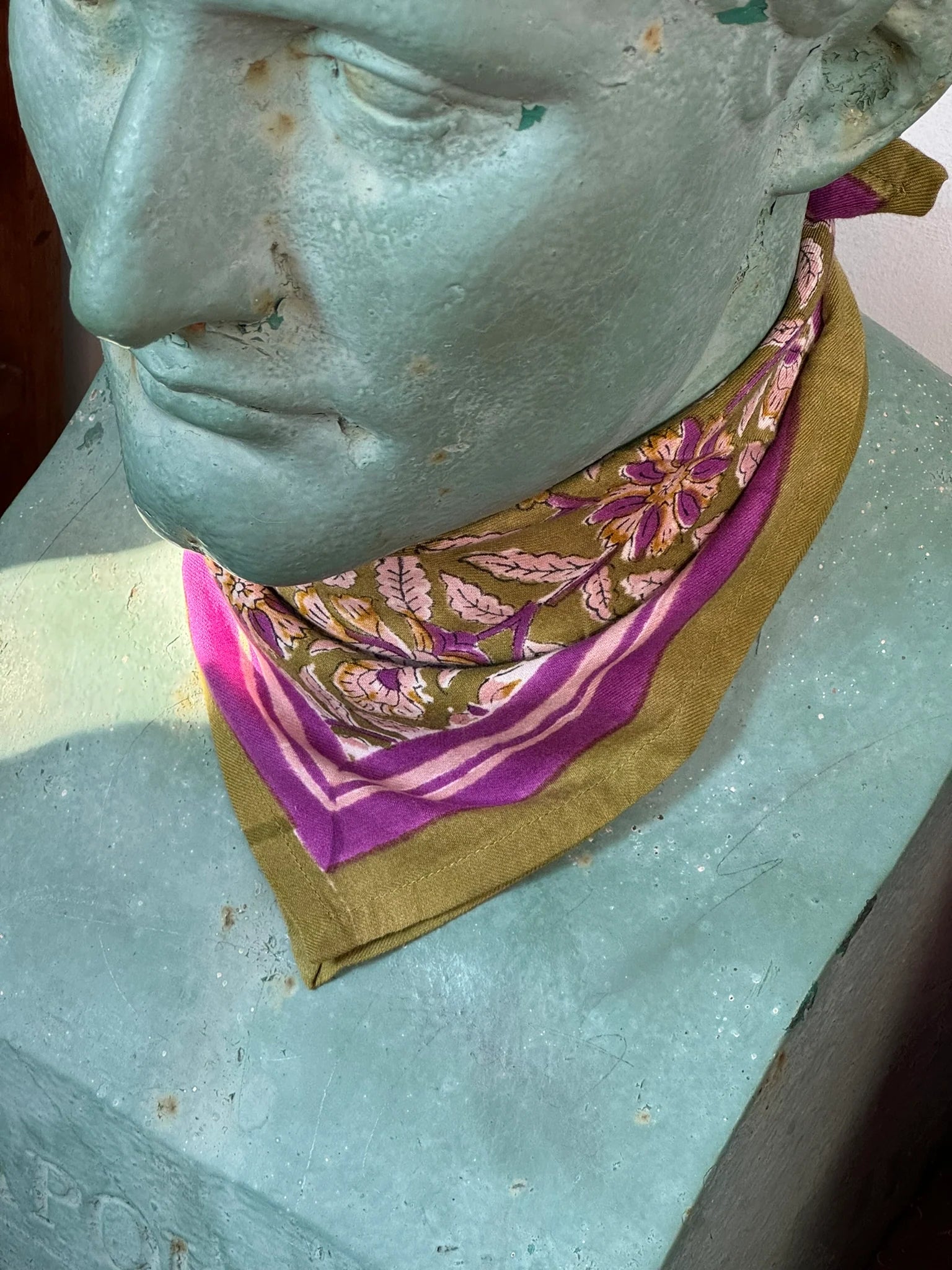 Cet foulard a été imprimé de manière artisanale selon la technique d'impression blockprint et confectionné à Jaipur en Inde. Les couleurs sont réalisées à partir de pigments naturels.