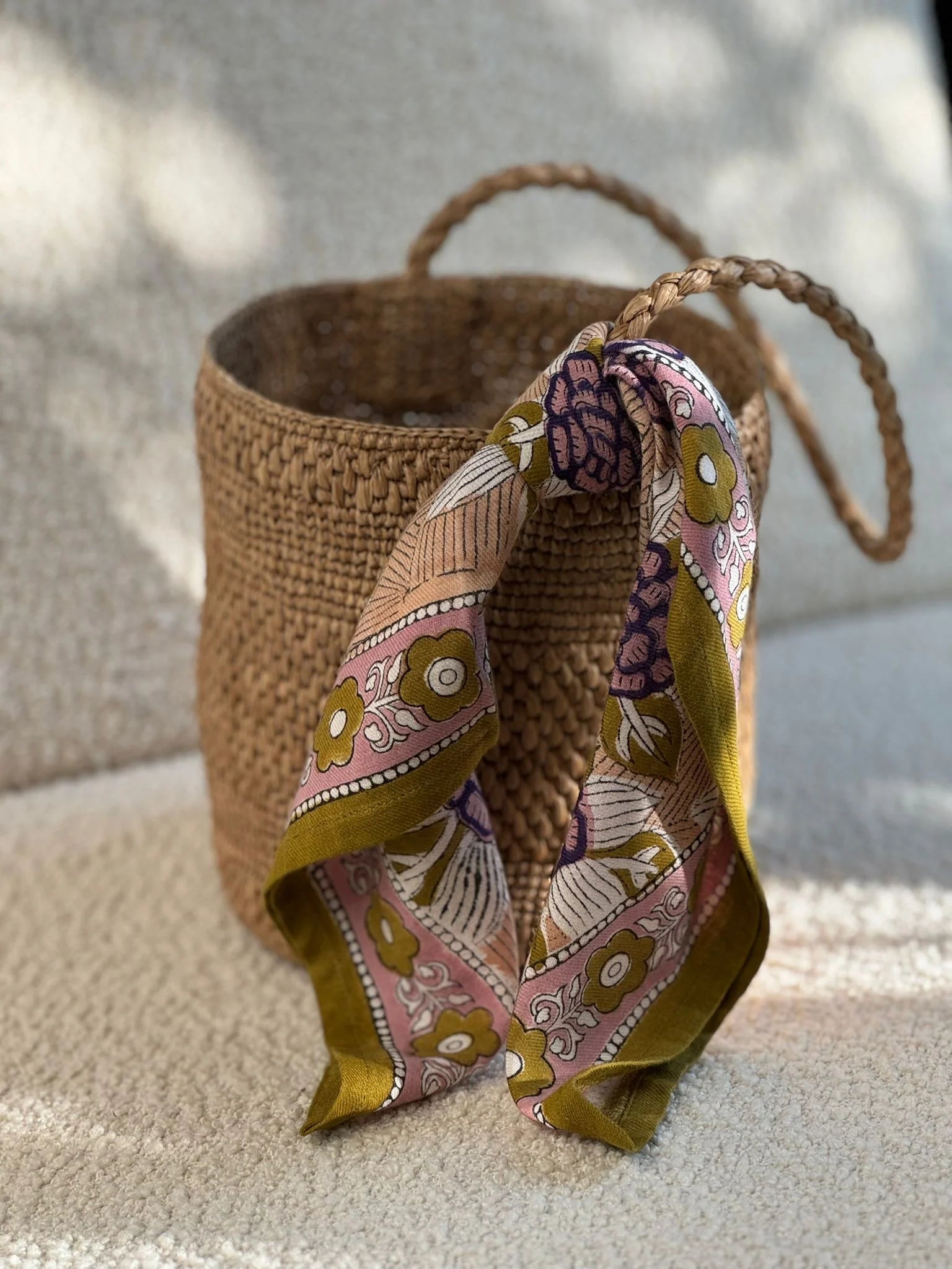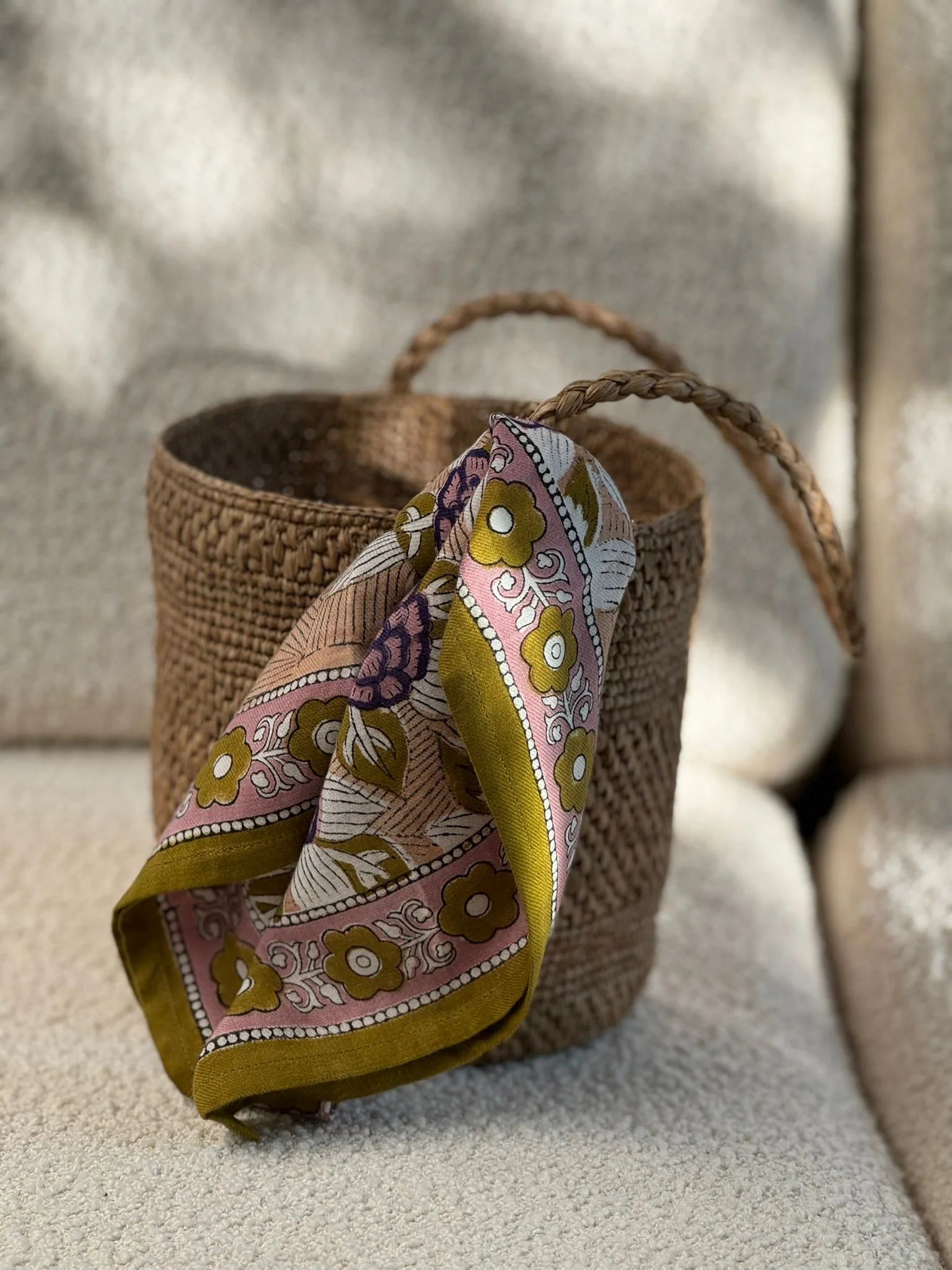 Cet foulard a été imprimé de manière artisanale selon la technique d'impression blockprint et confectionné à Jaipur en Inde. Les couleurs sont réalisées à partir de pigments naturels.